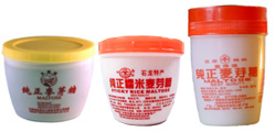 麥芽糖具有黏度高不易灌裝之特點,我們利用活塞擠壓及防滴漏裝置,包裝速度明顯有了降低;根據塑料杯/紙杯軟的特質及減少費用成本,選用了人動放杯,自動灌裝,自動打印生產日期,自動卷膜,兩次封口等功能.