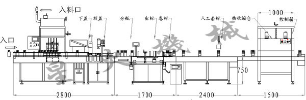 自流式灌裝旋蓋噴碼貼標收縮線設計方案介紹: