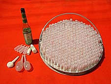 1.將被灌的液瓶倒置放在工作籃上,檢查液瓶下口應對齊。
